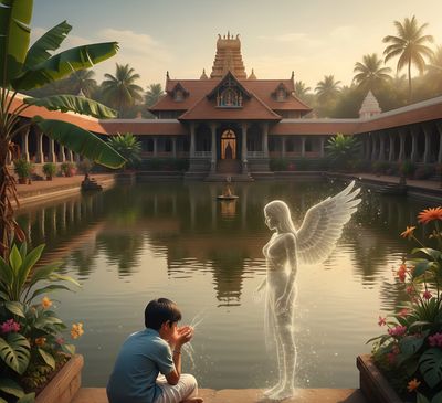 Suddenly, a man came to me. I didn't know who he was. He asked me to take a snan (bath) at the temple pond. As it was an unplanned trip, I was not carrying extra clothes. As per the ritual, one should take a bath before darshan in the temple.
